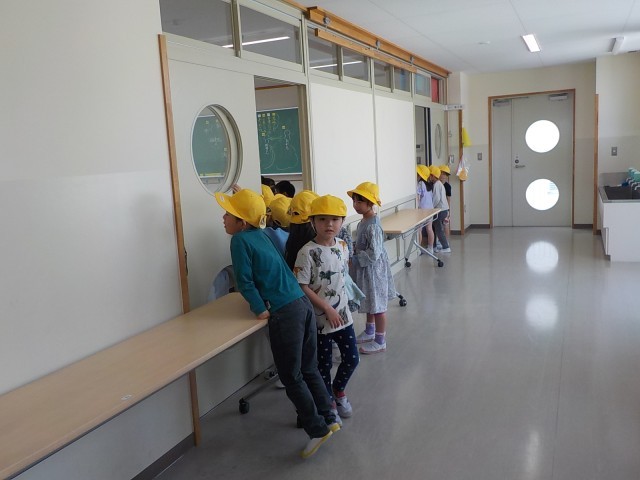 ペアになって、詳しく調べたい場所に行きました。お兄ちゃんお姉ちゃんが学習している様子にも興味津々です。