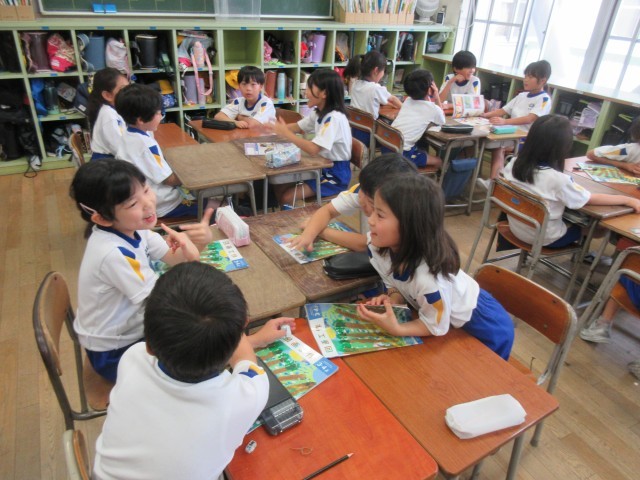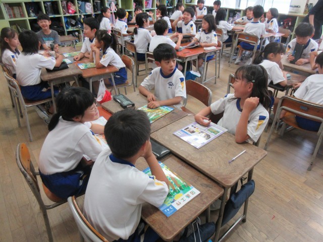 3年生の図工では「あの日あの時のきもち」を学習しています。この学習では心にのこったときの気持ちを絵に描きあらわします。絵を描く前にグループで心に残っているできごとを出し合い、交流しました。楽しそうにお話をする子供たち。どんな場面を書くのか楽しみですね。