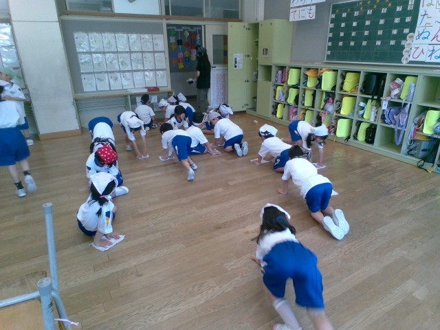 真剣に掃除をがんばっています。雑巾がけも上手になってきました。