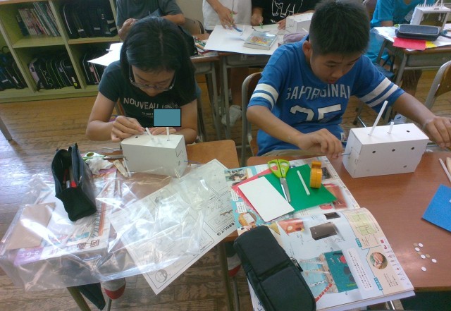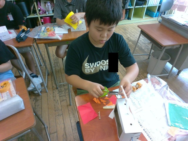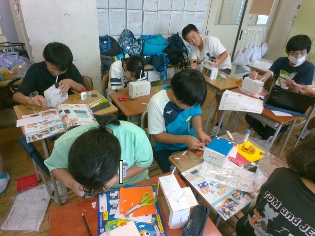 図画工作科では「くるくるクランク」の学習をしています。クランクの動きを活かして、どのように表現するか考えながら取り組んでいました。