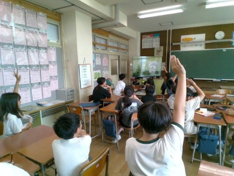 音楽係が企画した音楽集会でイントロクイズを行いました。