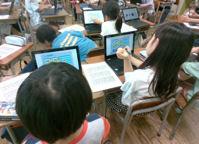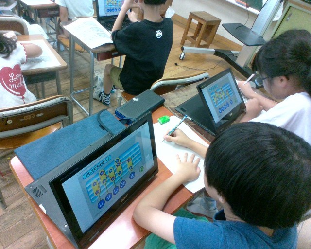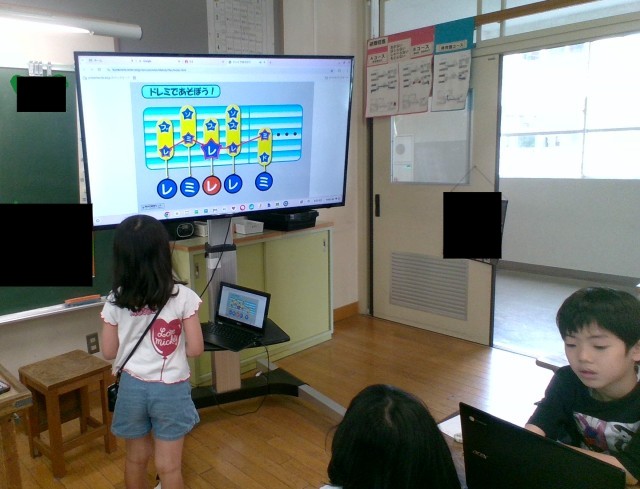 音楽科では「ぷっかり くじら」の旋律遊びをしました。クロームブックを使って、色々な音を選んでどんな旋律になるのか試しました。音の高さが変わると旋律の雰囲気も変わることに気づきました。