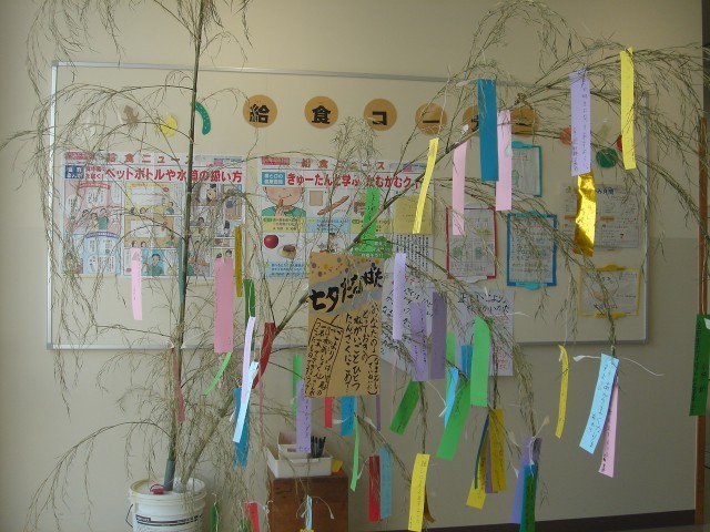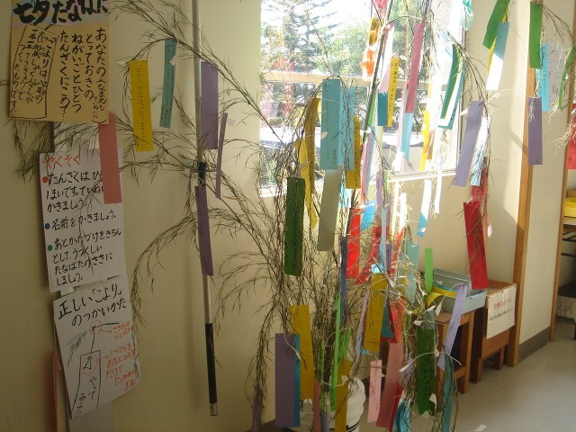 東玄関と西玄関には、子供たちが願いを書いた素敵な七夕飾りが出来上がりました。