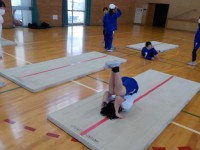 体育の時間にはマット運動に取り組んでいます。後転、開脚前転、倒立など自分のめあて...