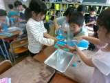 2つのペットボトルに入っている水が、どちらが多いか実際に比べました。楽しそうに...