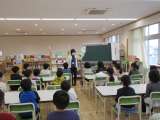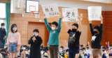 入学おめでとう集会で、運営委員会の子供たちが、堀川南小学校のキャラクターである「...
