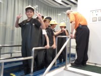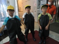流水体験前に、胴付長靴に着替えました。気合い十分です。