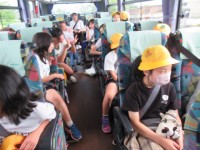 帰りのバスでは、行きの車中よりも元気な子供たち。でも、お疲れで寝ている子供たちも...