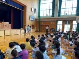 終業式の後、生徒指導主事から夏休みの過ごし方について話がありました。合言葉は「...