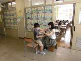 教室に戻り、一人一人が担任から一学期のがんばりを聞きました。