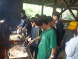 みんなで野外炊飯をしました。子供たちは、暑い中、火を起こし、灰と戦いながら、とて...
