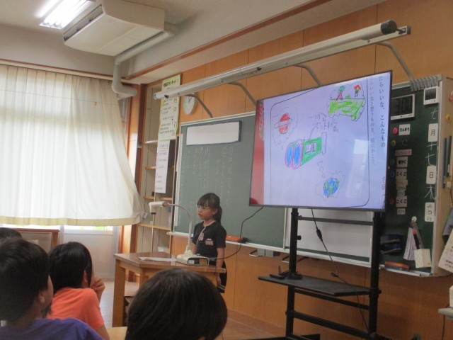 国語科の学習で、あったらいいなと思うものを考えました。たくさんの面白いアイディアが出て、盛り上がりました。