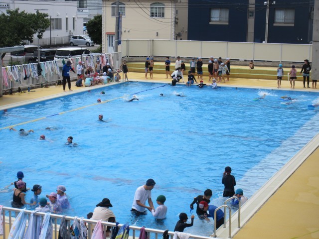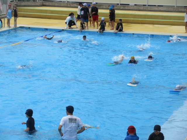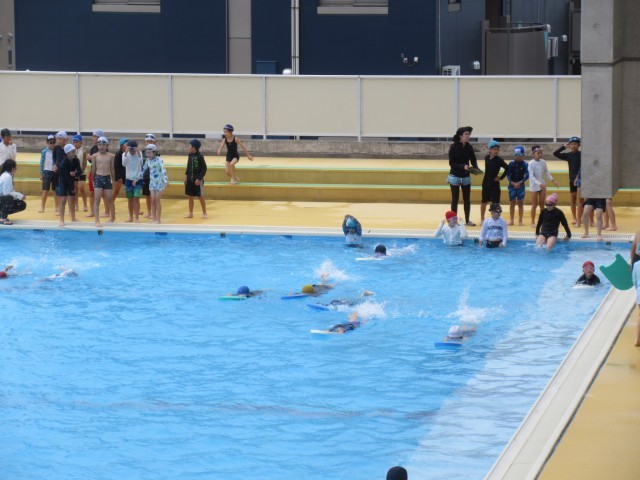 ビード版を使って泳ぐ練習をしたり、教師と一緒に潜る練習をしたりとそれぞれの目当てに応じて練習しました。