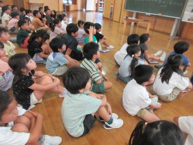 1、2年生合同で行く遠足について、オリエンテーションを行いました。