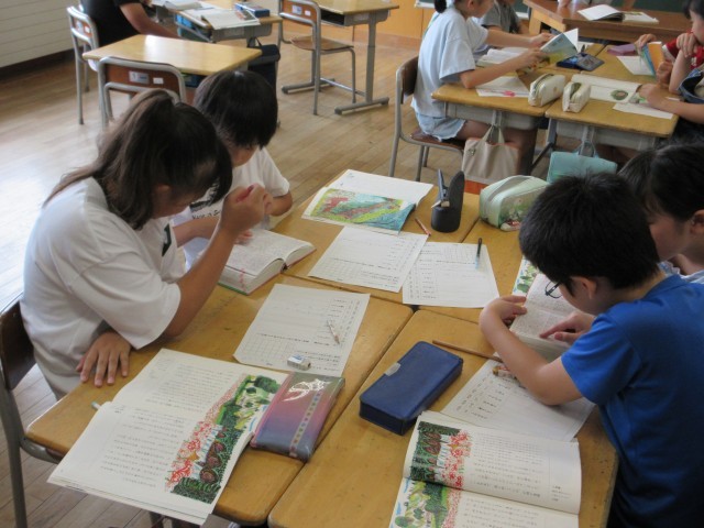 物語文「ごんぎつね」の中にある言葉調べを行いました。上手に国語辞典の使いながら調べていました。
