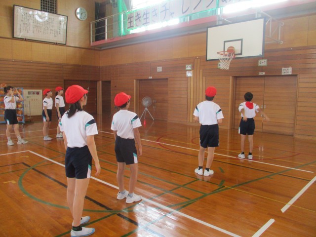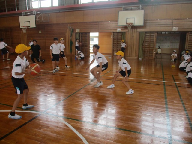 体育では、バスケットボールをしています。シュート練習をしたり、ミニゲームをしたりしています。
