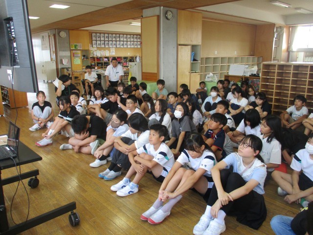 学習発表会の演目を発表しました!最後に歌う曲を真剣な表情で聴いています。