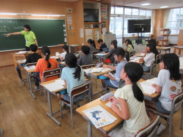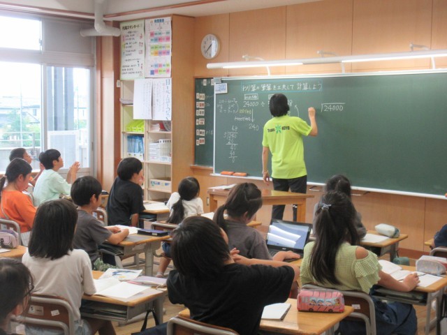 始めは、黒板に書かれた大きな数を見て思わず「ええっ」という声を漏らした子供もいましたが、大きな数でも工夫すれば簡単に答え計算できることが分かりました。