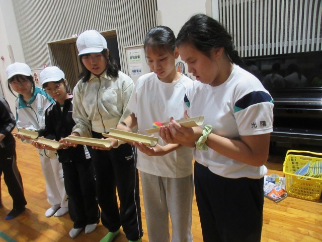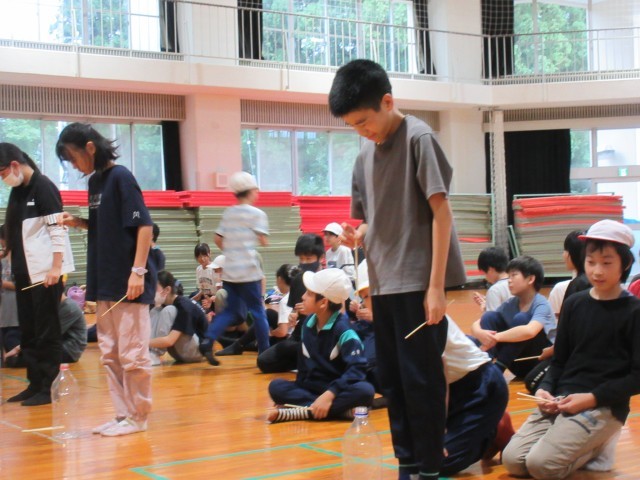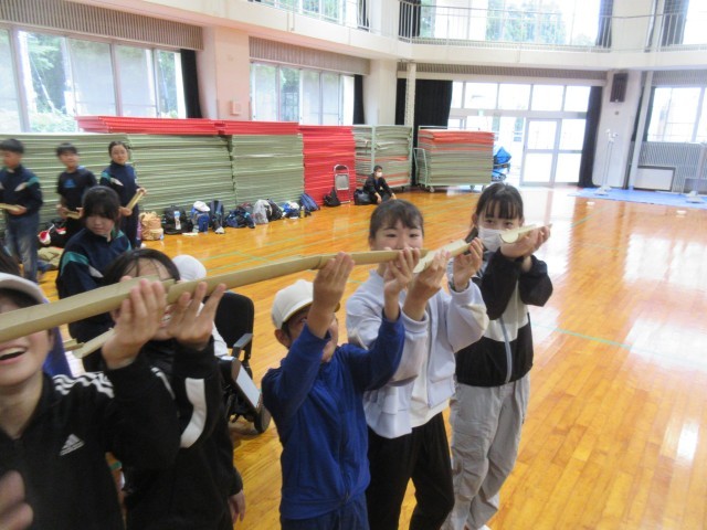 遊びリンピックの様子です。班の仲間と楽しく盛り上がりました。友達との仲が一段と深まりましたね。