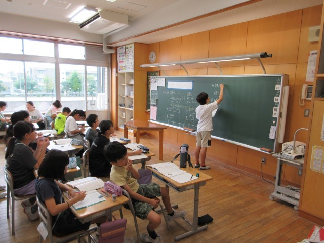 「倍の見方を考えよう」という目当てで、くらべられる量がもとにする量のいくつ分にあたるかを考えました。