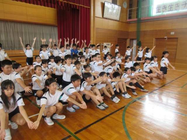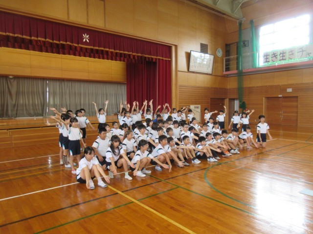 群読とボディーパーカッションに挑戦する4年生の子供たち。練習を重ね、動きや声がだんだんとそろってきました。