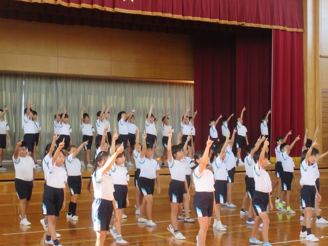 体育館ステージやフロアを使ってダイナミックに動いています。