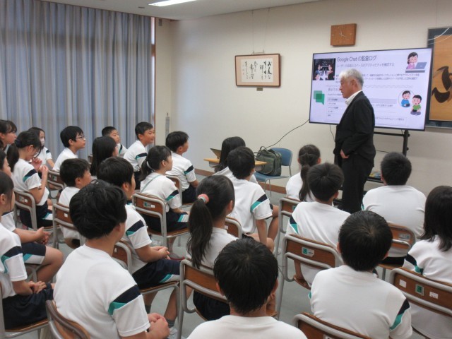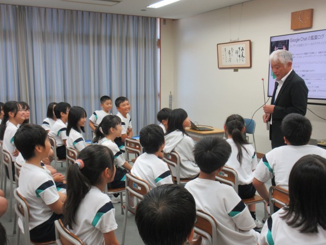 富山市教育センターが市内の5年生全てを対象に行っている「情報モラル小5講座」を受講し、実際に起こった事件や問題等の事例をもとに、インターネットの適切な利用、情報発信時の注意点等、情報社会における倫理的な行動や知識を学びました。