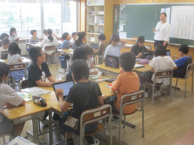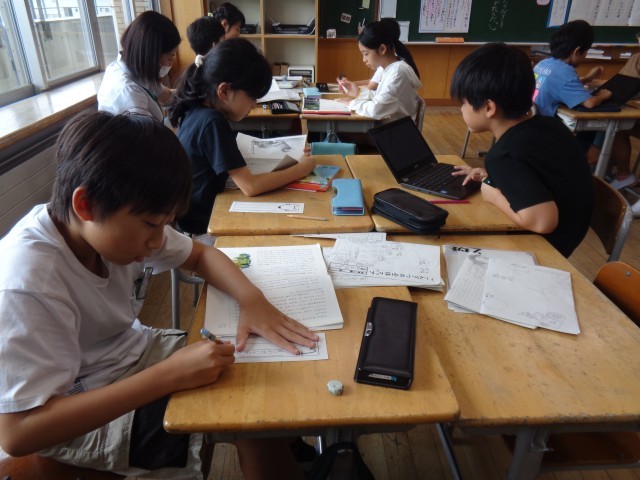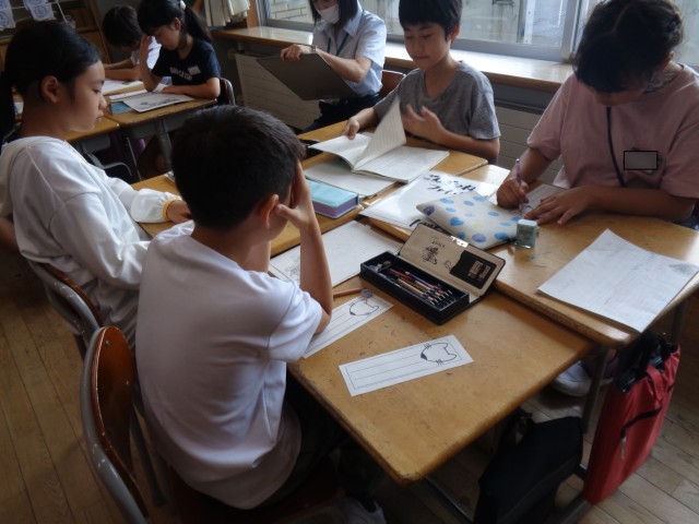 登場人物の気持ちについて、グループの友達と話し合いながら考えました。