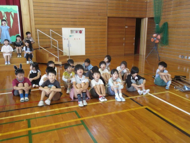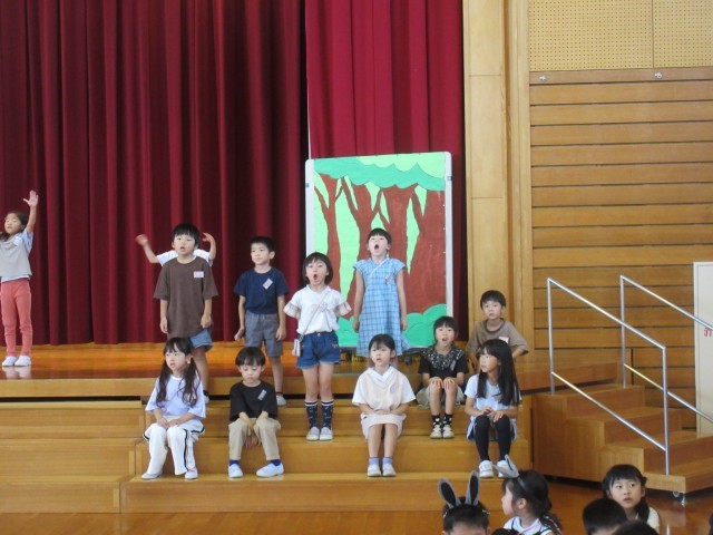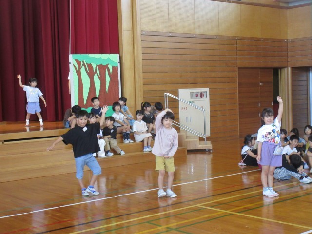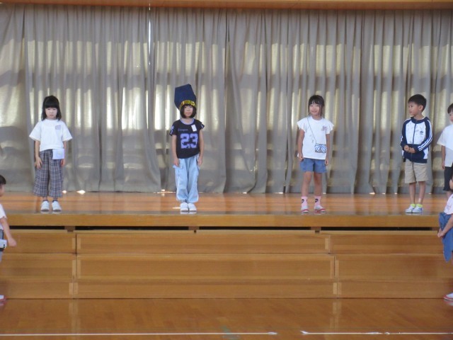 体育館での練習にも慣れ、声も動きもより大きくなってきました。袖で待つ態度も立派です。