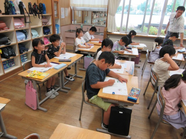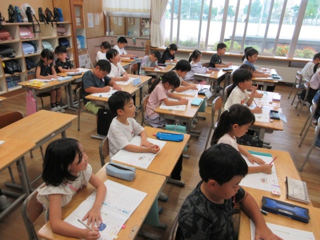 新出漢字の書き取り練習を行いました。繰り返し空書きをして、筆順に気を付けて書いていました。