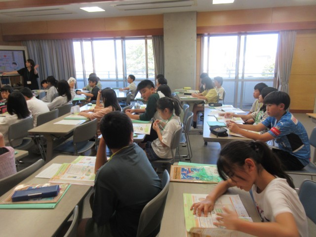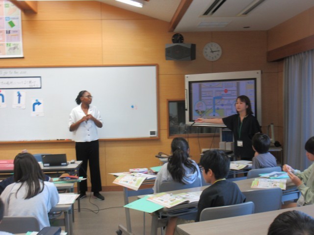 道を曲がったり、まっすぐ進んだり、英語での指示を聞いて、地図の上の消しゴムを動かしました。