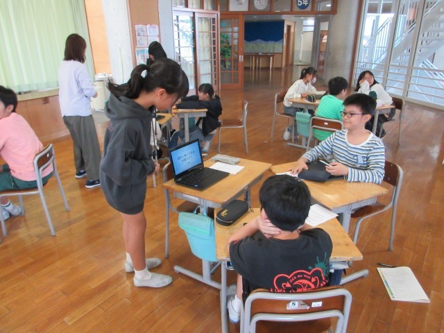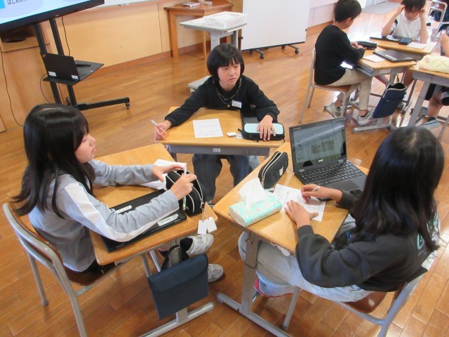 総合的な学習の時間にプレゼンを紹介し合い、自分の伝えたいことがしっかりと伝わっているかを確かめました。友達のアドバイスをもとにプレゼンの更なるパワーアップポイントを考えました。