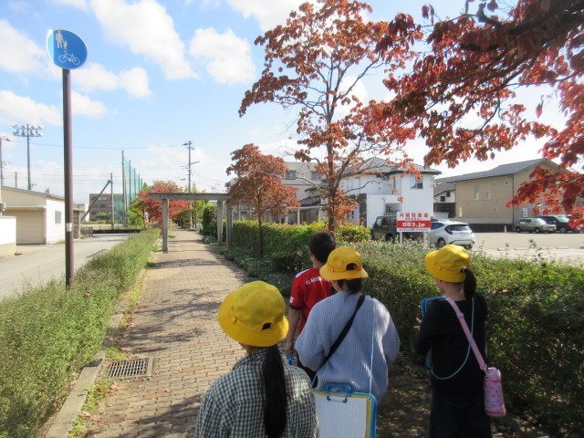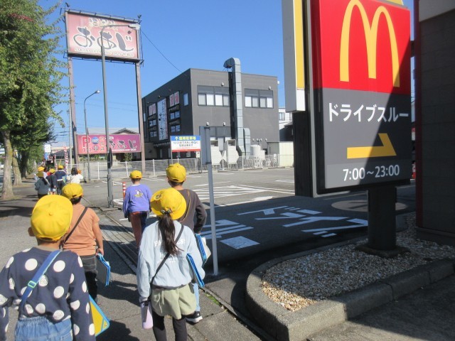 店、道について調べているグループの様子です。光陽校区には大きな道路沿いにたくさんの飲食店や美容院、花屋さん等があり、にぎわっていることが分かりました。
