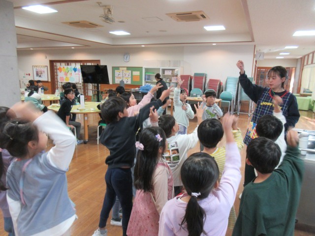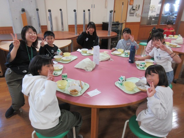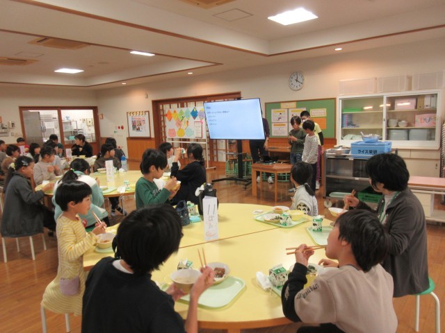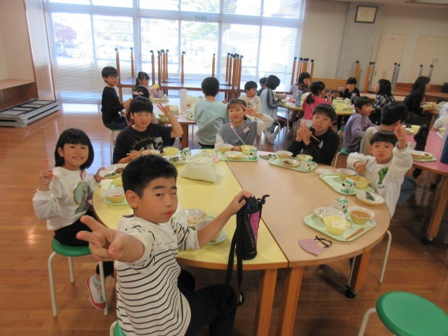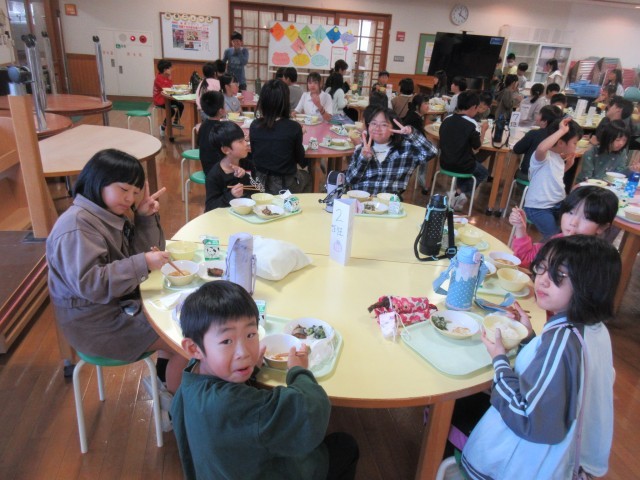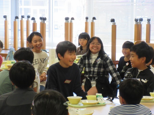 最後に、日直の子供がアドリブで感想を聞いたところ、何人もの子供が手を挙げ、「同じテーブルの人の名前を呼べるようになってうれしかった」「交流できて楽しかった」「給食委員会のクイズがあって楽しかった」などと話してくれました。この会食をきっかけに、仲良しの輪が広がるとよいですね。