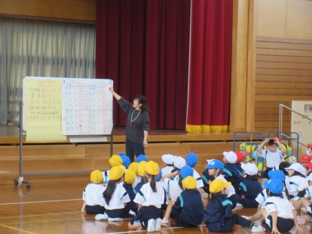 ゲームを通して、投げる力を高めるだけではなく、同じチームの友達と一緒に思い切り運動する楽しさを感じたり、「勝ちたい」「ゲームで点数を入れたい」と夢中になって練習したりする姿を期待しています。