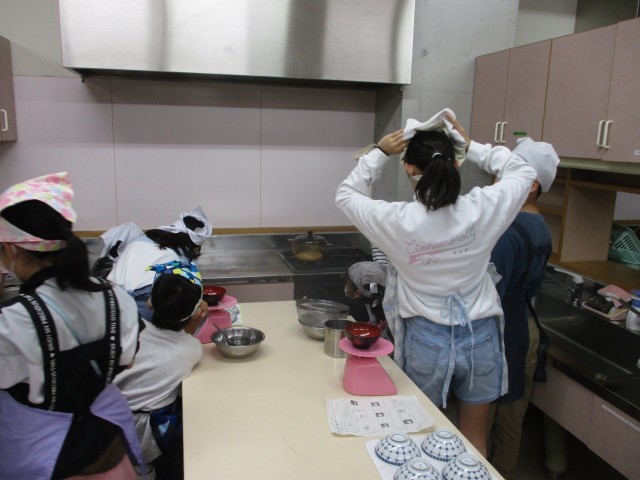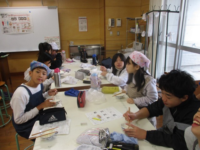 家庭科では、ご飯やみそ汁の調理実習を行っています。今日は、水の量や火加減に気を付けてご飯を炊きました。上手に炊くことができていました。