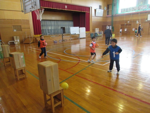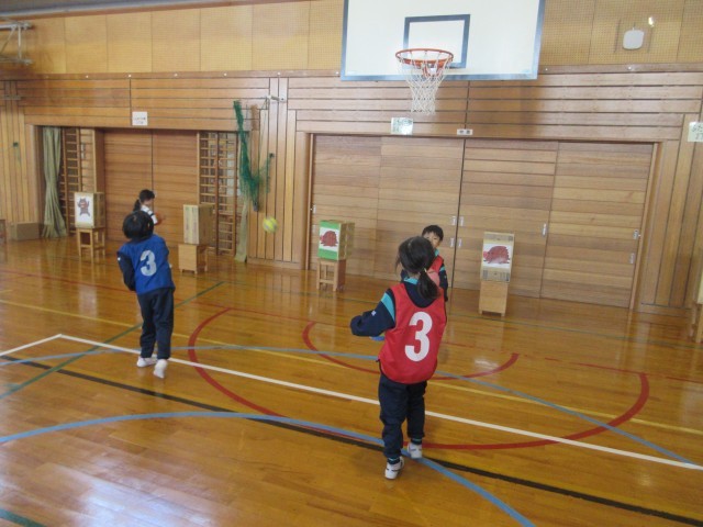 ボールを投げる力、相手チームの子供が投げるボールをさえぎる動き、相手チームの子供がじゃまをするのをかわして投げる技等、一人一人が目当てをもって熱心に練習をしていました。