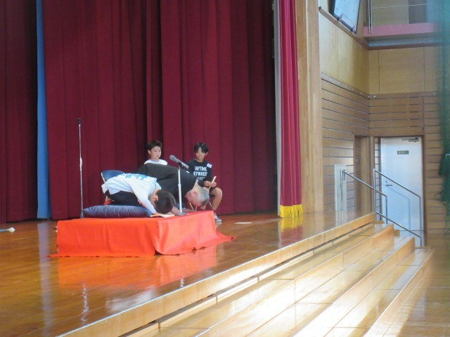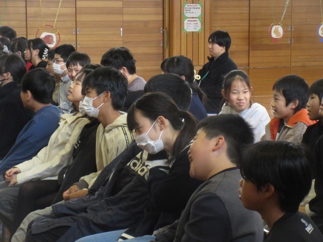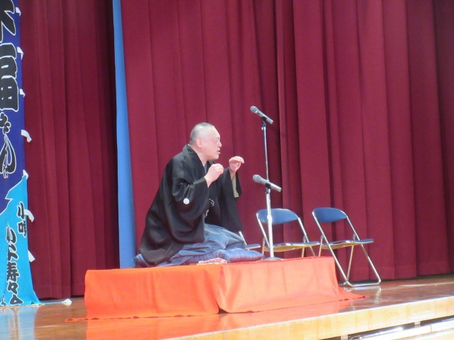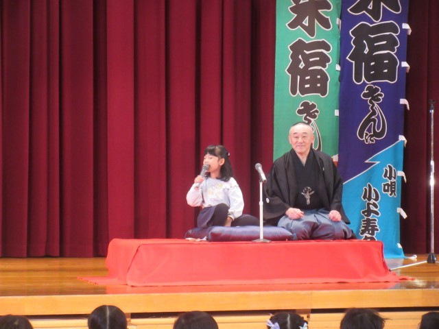 米福さんの軽妙な語り口と温かなお人柄に、子供たちはどんどん引き込まれ、心を解放して思い切り笑う姿が見られました。また、各学年の代表児童による小話体験もあり、大変盛り上がりました。