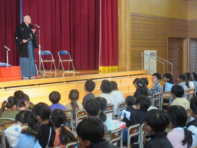 桂米福さんをお招きし、「落語を楽しむ会」を行い、2限は1~3年生、3限は4~6年生とそれぞれ落語の魅力にたっぷりと浸りました。