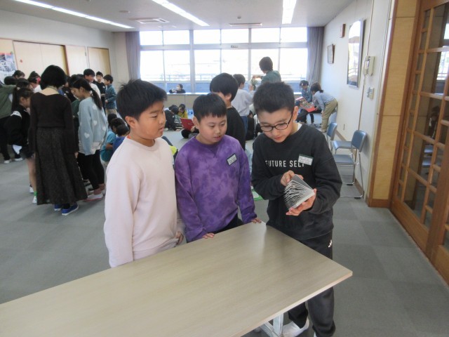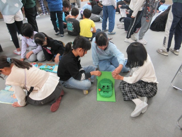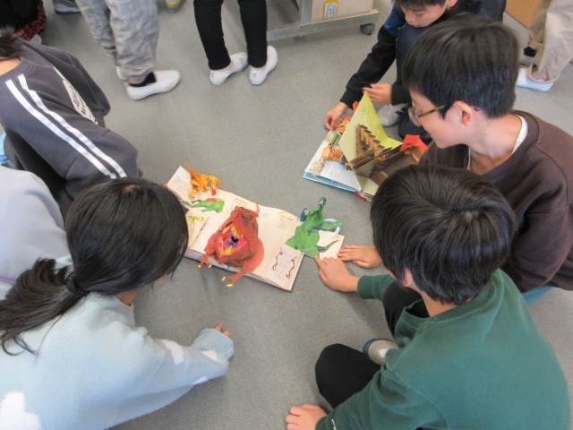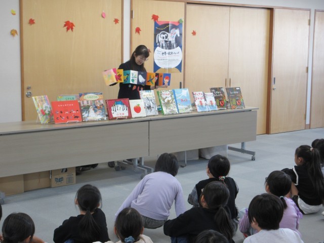 絵本専門士の堀地先生をお迎えして、絵本の読み聞かせや紹介を行いました。堀地先生はたくさんの絵本を持ってきてくださったので、子供たちは手に取ってその面白さを味わっていました。今日は4年生と2年生が参加しました。