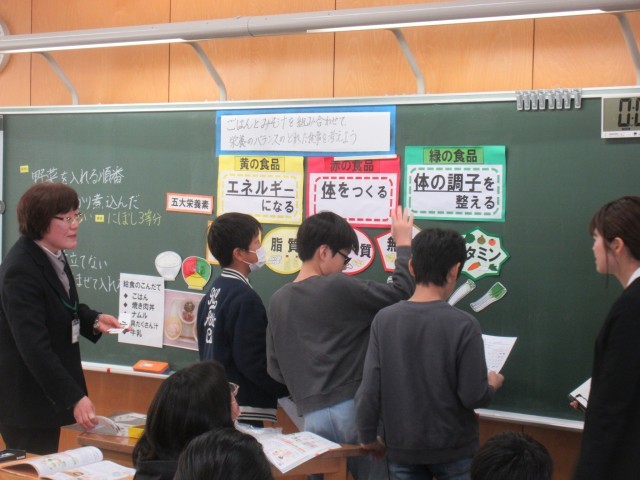ごはんとみそ汁を調理したことについて触れながら、栄養について学習しました。