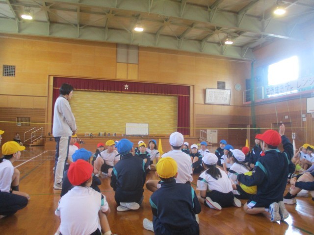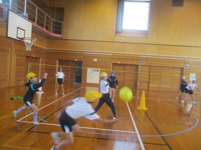 キャッチバレーボールの学習を始めています。作戦やルールなどもみんなで考えながら進めています。