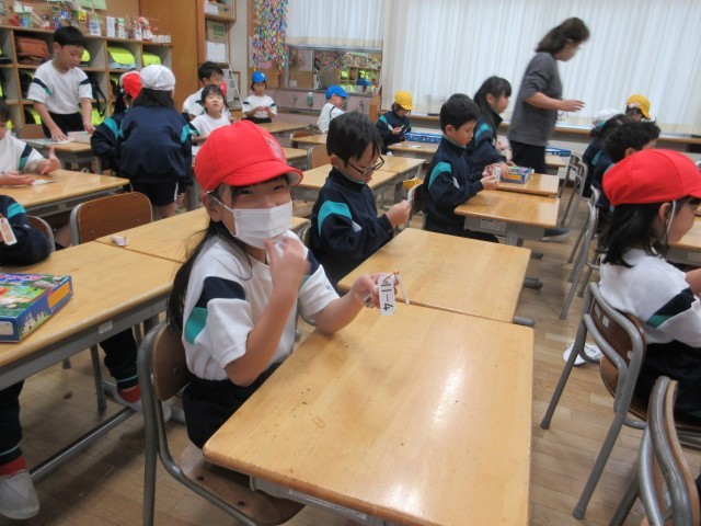 たし算や引き算の計算カードを練習しました。式を見て答えを唱えたり、友達と問題を出し合ったりしました。