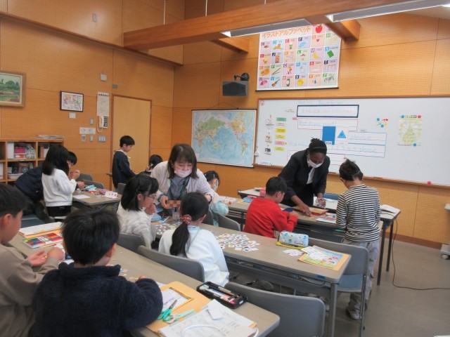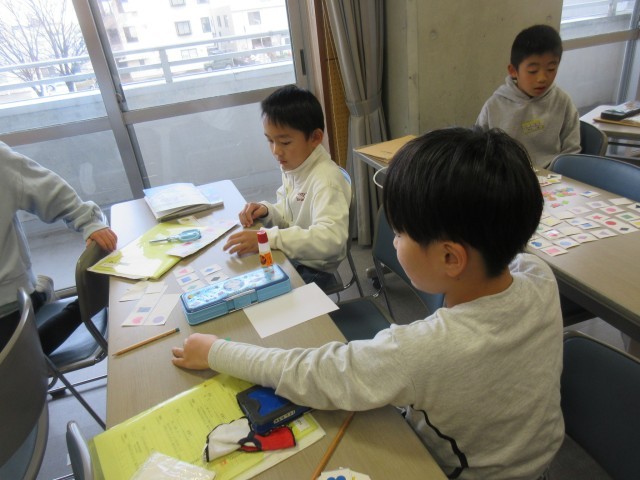 好きな形・色のパーツを選んで、カードづくりをしました。形や色の英語での言い方にも随分と慣れました。どのようなカードに仕上がるのか楽しみです。