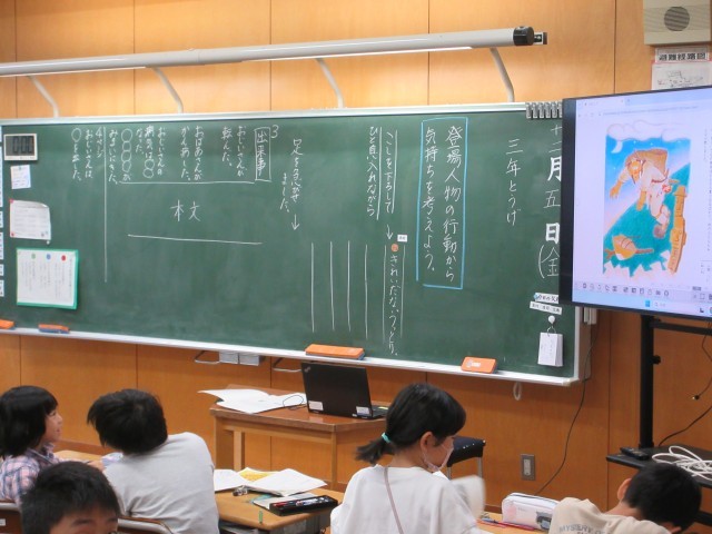 物語文「三年とうげ」の登場人物の気持ちを想像しながら、お話の面白さを味わいました。