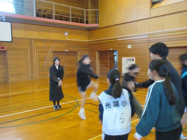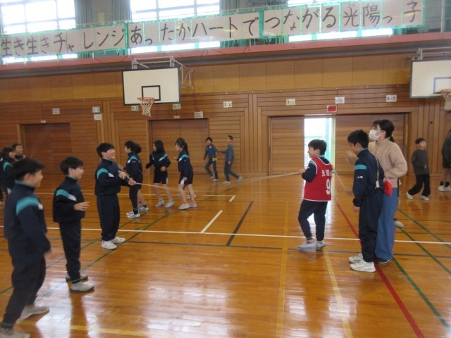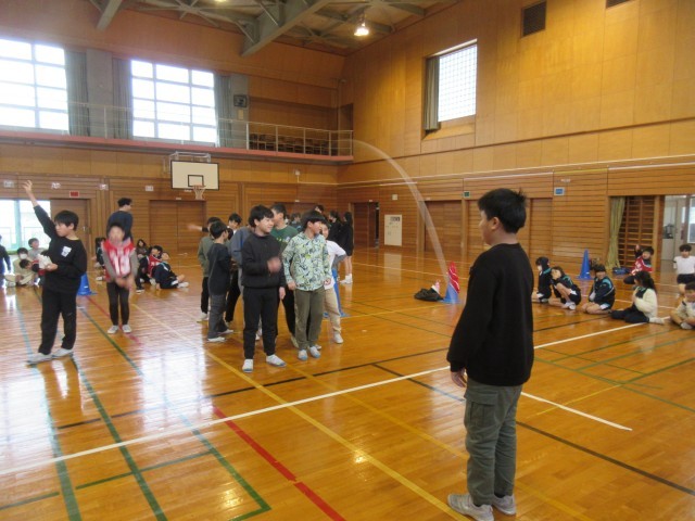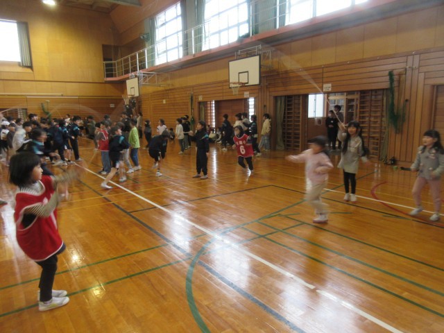 集会委員会が企画・運営したミニ集会の様子です。長縄跳び対決では、この日に向けて熱心に練習してきただけあって、どのチームも真剣そのものでした。