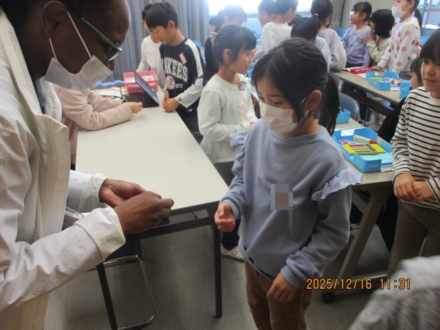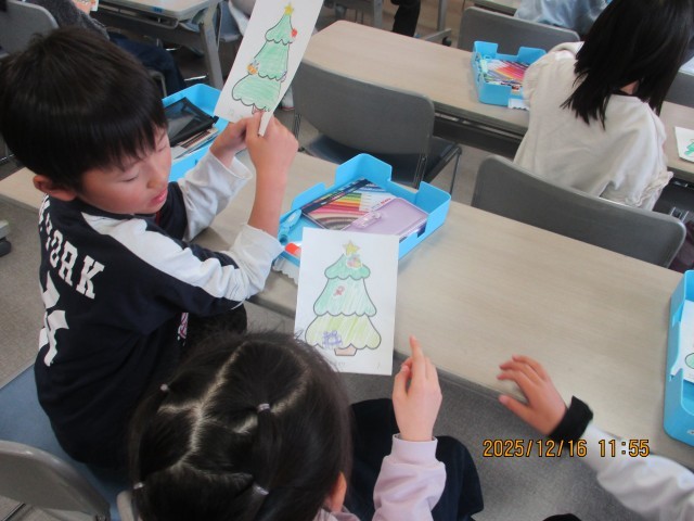外国語の学習の様子です。今回は、英語で欲しいものを伝え、もらったらお礼を言うやりとりを通して、クリスマスカードをつくりました。素敵なクリスマスカードができました。