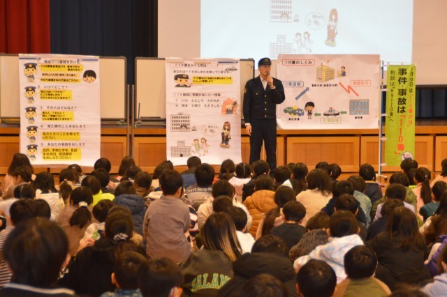 全校児童を対象とした「正しい110番のかけ方教室」がありました。