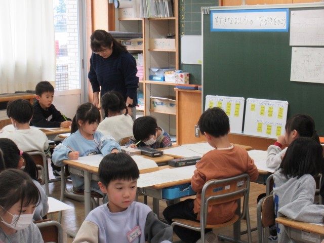 担任の先生が作った見本を見てイメージを膨らませ、早速下絵を完成させました。