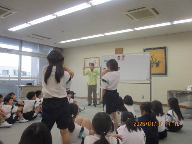 発育測定の前に、養護教諭と一緒に『咳エチケット』について考えました。『エチケット』とは『思いやり』だということを学びました。